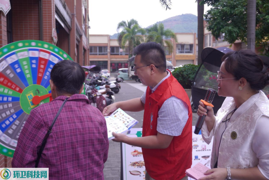 在垃圾分类互动区域,活动巧妙结合南靖县持续推广的垃圾分类政策,设置了“分类大转盘”“垃圾分类投壶”等趣味游戏。工作人员特别将重阳糕、菊花等节日元素融入问答环节,帮助老年群体在轻松氛围中掌握分类知识。