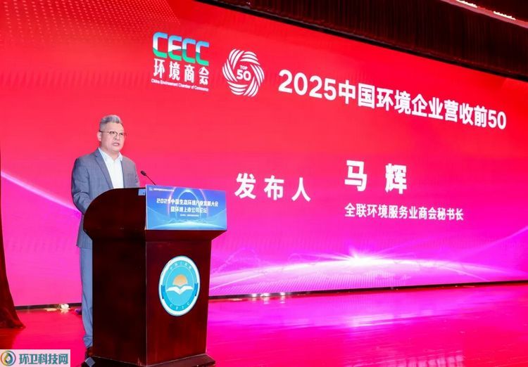 环卫科技网从全联环境商会官微,12月14日,全联环境服务业商会2025年会、2025中国生态环境产业发展大会暨环境上市公司论坛在北京盛大开幕。会上,环境商会秘书长马辉发布2025中国环境企业营收前50发展报告及名录。