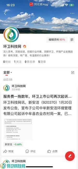 2026年1月21日,环卫科技网同花顺账号正式开通,环卫科技网旗下再增一信息发布渠道。