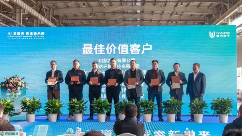 由壹为汽车董事长李红朋为启航汽车有限公司、凯达环境科技有限公司、新安洁智能环境技术服务股份有限公司、成都市青春保洁服务有限公司、劲旅环境科技股份有限公司、海沃机械(中国)有限公司 、河北德昂环境工程有限公司7家领最佳价值客户颁奖。他们是壹为汽车的同行者,他们的选择与深度信任,是壹为创新技术得以落地、持续迭代的最强动力。