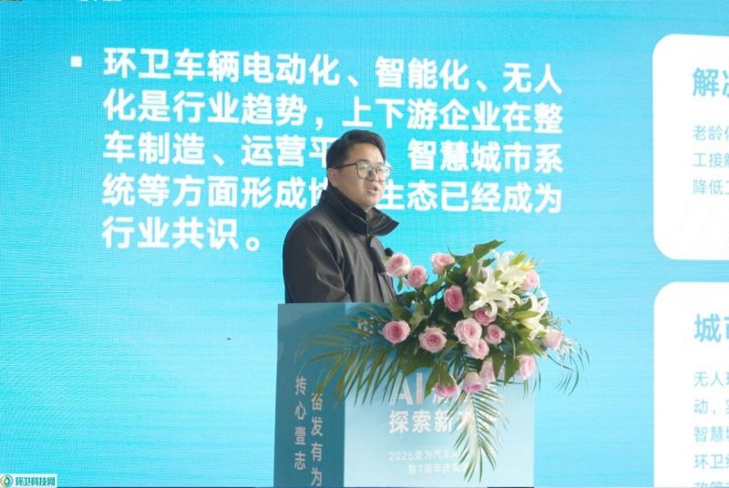 随后,随州市曾都区科学技术和经济信息化局局长徐德鹏为公司七周年庆典和新品发布会致辞,徐局长首先对壹为汽车持续发展,在AI环卫领域有所突破,推动了城市绿色低碳转型,表达认可,他指出:国家新发展理念和“双 碳”目标为新能源、人工智能、环保产业带来机遇,智能制造与绿色转型是必然趋势,各级政府也出台了支持政策,曾都区政府将从精准落实惠企政策、优化产业生态、营造优质营商环境三方面支持企业发展。同时希望壹为汽车以七周年为新起点,聚焦主业、瞄准前沿、扎根随州并放眼全球,为地方经济高质量发展注入绿色科技动能。