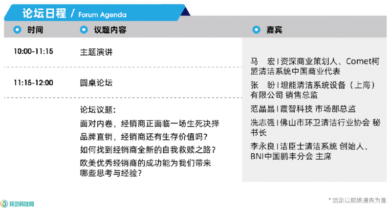 论坛将以中国清洁2.0为核心,通过对中国清洁产业现状的分析,进行多维度的思考,从经销商角度提出具有颠覆性的发展建议。