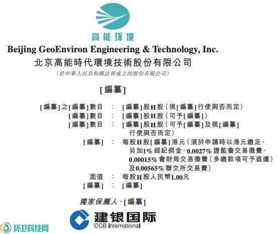 环卫科技网从香港联交所获悉,3月27日,北京高能时代环境技术股份有限公司(高能环境,603588.SH)正式递交招股书,拟在香港主板上市。
