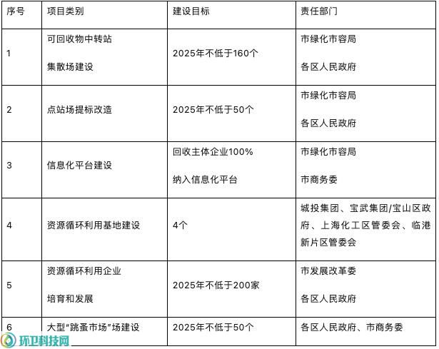 上海市废旧物资循环利用体系示范城市建设项目清单