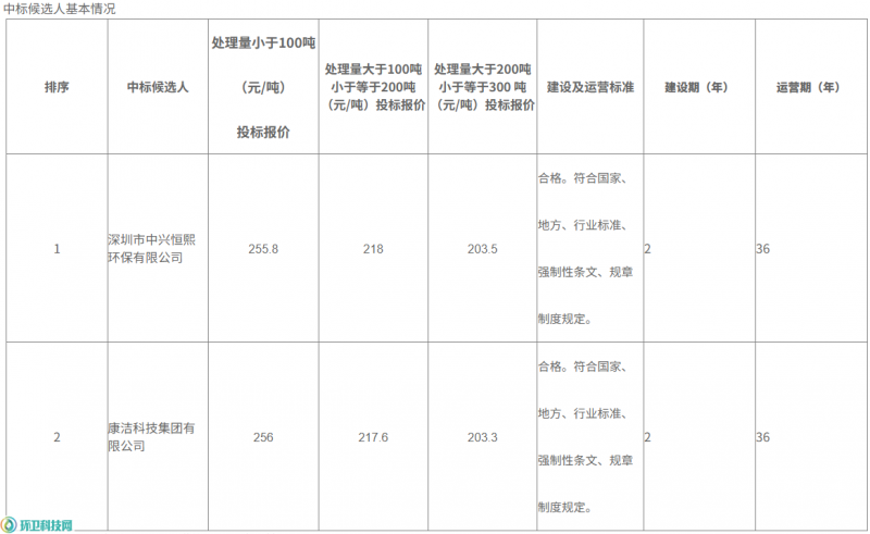 环卫科技网讯,10月11日,长治市餐厨垃圾处理项目特许经营中标候选人公示,深圳市中兴恒熙环保有限公司、康洁科技集团有限公司分列第一、第二候选人。