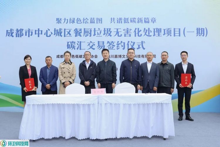环卫科技网讯,10月21日,成都市中心城区餐厨垃圾无害化处理项目(一期)碳汇交易签约仪式在成都举行。项目运营方四川嘉博文生物科技有限公司与成都市绿色低碳发展协会签署协议,完成基于“碳惠天府”机制开发的21718吨碳减排量认购,标志着全国餐厨废弃物处理行业首个“万吨级”碳减排项目成功实现价值转化。