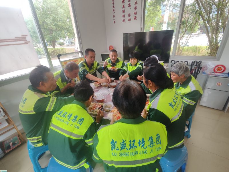 在面向公众开展宣传教育的同时,南靖县城综局也密切关注环卫工人群体的实际需求,专门组织了一场温馨的爱心午餐活动。环卫工人们暂时放下日常的忙碌,在温暖的氛围中共享美好时光。餐后,还安排了垃圾分类现场操作环节,引导环卫工人将理论学习与实际工作相结合,进一步提升分类技能和工作效率。这一安排不仅体现了对劳动者的人文关怀,也通过学用结合的方式,助力环卫工作朝着更加专业化的方向发展。
