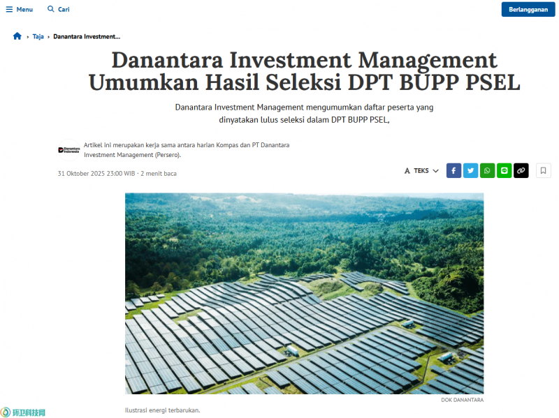 环卫科技网从印尼《罗盘报》网站(www.kompas.id)获悉,10月31日,印度尼西亚主权投资基金PT Danantara Investment Management公布了印尼环境友好型废物转化能源(即“垃圾发电”)项目选定供应商名单,共有24家入选,其中20家为中国企业。