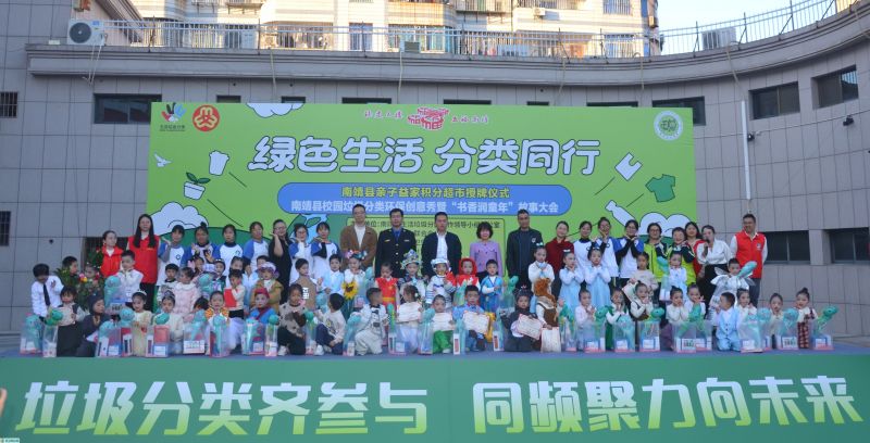 为深入贯彻习近平总书记关于垃圾分类工作的重要指示精神,推动垃圾分类教育全面融入校园文化与家庭生活,11月29日下午,由南靖县城市管理和综合执法局、县妇女联合会、县环境卫生服务中心联合主办,山城镇解放社区、南靖县国英幼儿园与爱心社区服务有限公司共同承办的“绿色生活,分类同行”南靖县校园垃圾分类环保创意秀暨“书香润童年”故事大会&南靖县亲子益家积分超市授牌仪式在金才假日广场顺利举行。