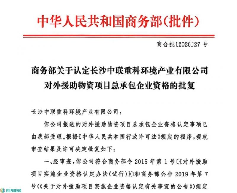 环卫科技网讯,近日,由商务部正式批复,认定盈峰环境具备对外援助物资项目总承包企业资格。盈峰环境由此成为湖南省唯一获此国家级资质的企业,标志着公司综合实力、履约能力及社会责任获得国家层面的高度认可,成功跻身参与国家对外援助项目的“国家队”行列。