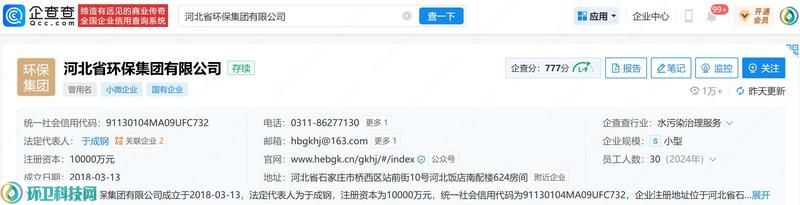 环卫科技网从企查查获悉,2026年3月,河北国控环境治理有限责任公司正式更名为河北省环保集团有限公司,注册资本1亿元。