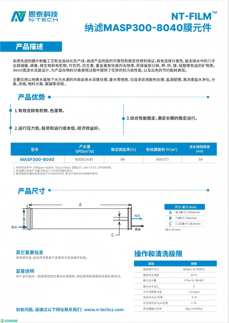 恩泰环保科技(常州)有限公司(N1 馆 I15) 推出抗污染纳滤膜脱色处理技术,专注渗滤液脱色与高COD 脱除,耐污性强、脱除率高,适配复杂渗滤液水质,稳定保障出水达标。