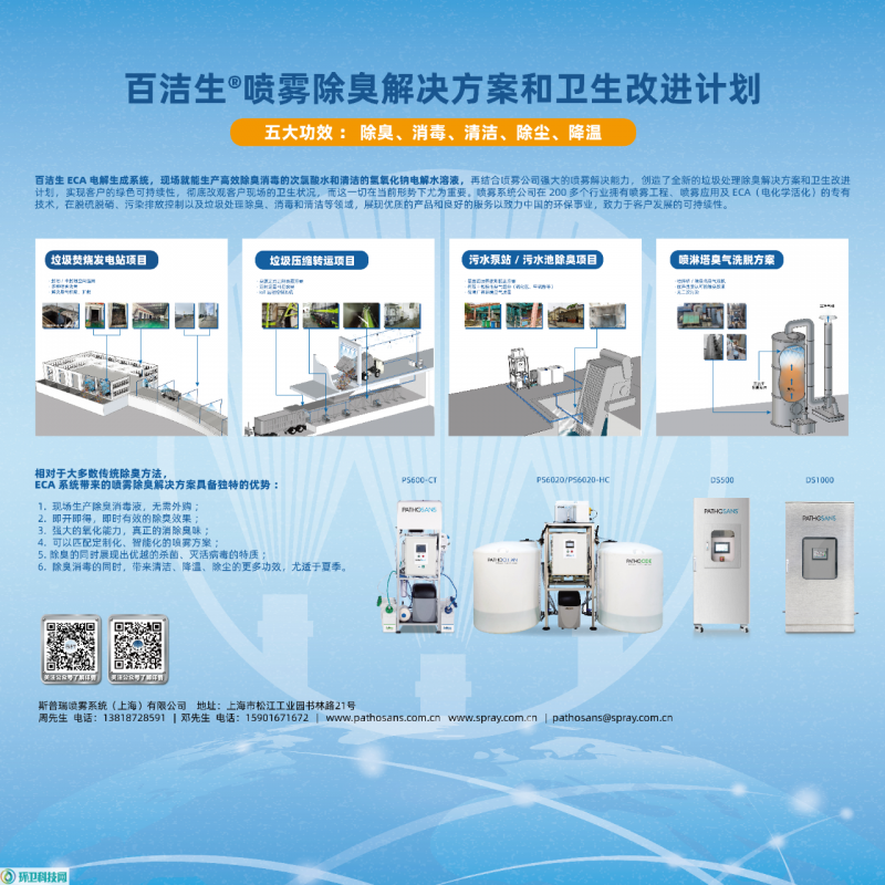 斯普瑞喷雾系统(上海)有限公司(E1 馆 G30) 带来百洁生喷雾除臭解决方案,现场自产除臭液、强氧化祛味、兼具消毒清洁,安全绿色、可定制,全面提升站点卫生健康水平。