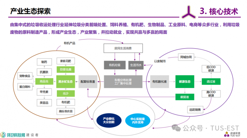 除技术本身外,启迪环境还构建了完整的产业生态体系,将餐厨垃圾处理延伸至垃圾分类前端处置、饲料养殖、有机肥、生物制品等多个领域,通过 “有机垃圾→有机酸化液→碳源 / 昆虫养殖→蛋白饲料 / 有机肥” 的循环路径,实现资源闭环利用,推动城乡生态产业链融合,助力 “双碳” 目标实现。