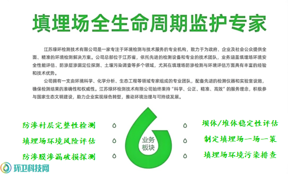 江苏绿环检测技术有限公司针对这一“硬门槛”需求,组建了专业技术团队,配备先进检测设备,可快速响应各地填埋场检测需求,不仅能高效完成防渗层完整性检测并出具权威报告,助力客户顺利通过联合核查,还能结合各地政策要求提供定制化服务,如针对黑龙江的季节性监管特点提供适配的检测方案,针对广东“无废城市”建设需求联动开展相关配套检测,全方位保障客户按时完成政策要求的各项任务。对运营主体而言,防渗层检测是不可逾越的“硬门槛”:未开展检测或检测不合格的,排查报告将直接判定为不通过,无法完成联合核查;治理验收阶段缺失检测数据的,项目不予通过,直接影响运营资格。多地已出现因未检测导致任务延期、被纳入重点监管的案例。这一现状凸显了专业检测服务的必要性,也为江苏绿环检测技术有限公司的服务落地提供了明确场景。对于填埋场运营主体而言,全维度检测评估已成为不可逾越的“硬门槛”:未开展完整检测评估的,排查报告将被直接判定为不合格,无法通过联合核查;治理验收阶段缺失相关数据的,项目不予通过,直接影响运营资格。多地已出现因检测维度不全导致任务延期、被纳入重点监管的案例,充分印证了全链条检测服务的必要性。江苏绿环检测技术有限公司的综合服务能力恰好契合这一需求,其覆盖防渗层、坝体、堆体、地下水及环境风险评估的全流程服务,可一站式解决运营主体的检测需求。