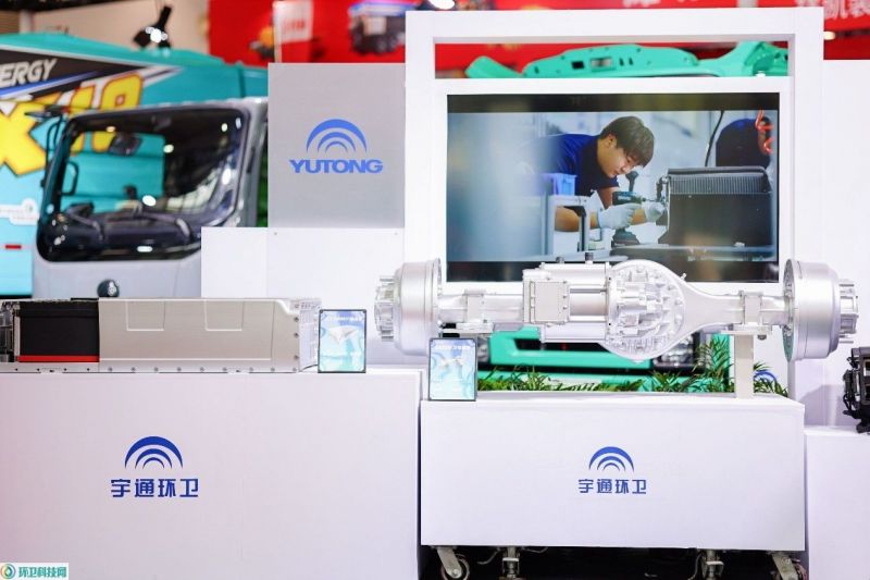 本次展会上,宇通环卫设置了核心零部件独立展区,电池包、电驱桥等零部件集中亮相。此次参展的电池包采用IP68+IP6K9K最高防护等级,能够在涉水、碎石冲击、盐雾腐蚀等极端工况下稳定运行;电驱桥采用一体化轻量化设计,传动效率提升5%,有效降低整车能耗。 众多专业客户驻足参观,充分体现了行业用户对“新能源三电核心技术自主可控”的高度关注。