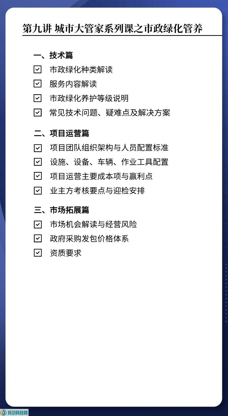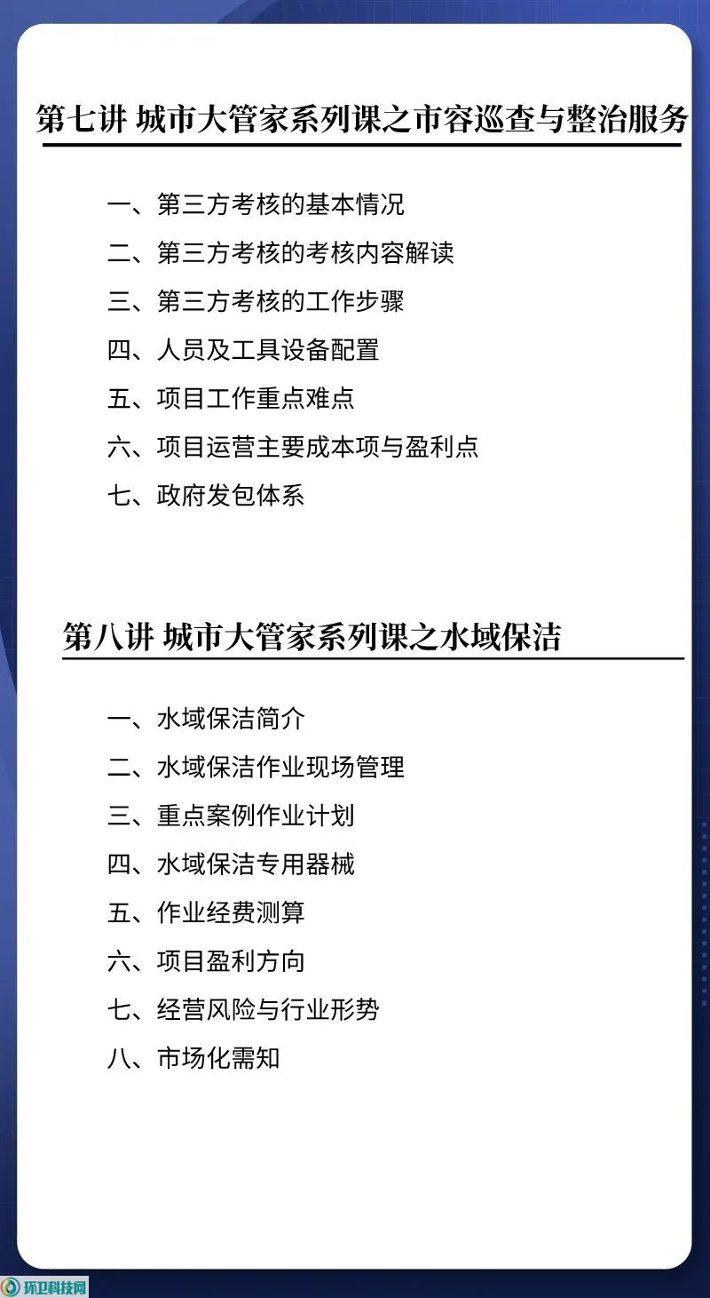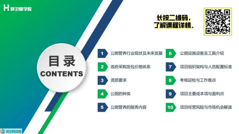 本节课涵盖了公厕服务内容、设施设备、组织架构、人员配置标准、考核迎检、工作难点、项目主要成本项及盈利点等等。