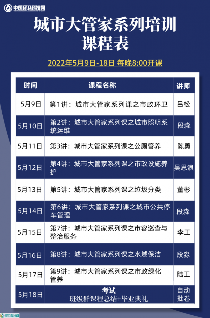 城市大管家系列课课程表