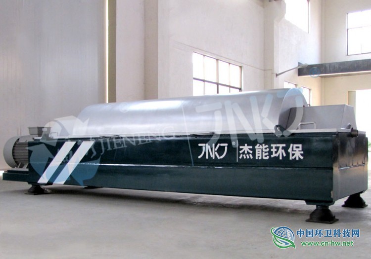 总排废水经格栅、沉砂池除去大颗粒杂物和沉砂后,在调节池作一定时间停留,使水质均匀。然后以泵为动力将废水提升进入管道混合器、反应器,并投加絮凝剂改善水质特性。当混合废水经料管从中心轴进入高速旋转的转鼓内,在高速旋转产生的离心力作用下,利用固液两相的密度差,使固相颗粒迅速与水产生分离沉淀积在转鼓内壁上,与转鼓作相对运动的螺旋叶片不断的将沉积在转鼓内壁上的固相颗粒刮下并推出排渣口。分离后的清液经叶层调节板开口流溢出转鼓。从而实现离心机对物料的连续分离。