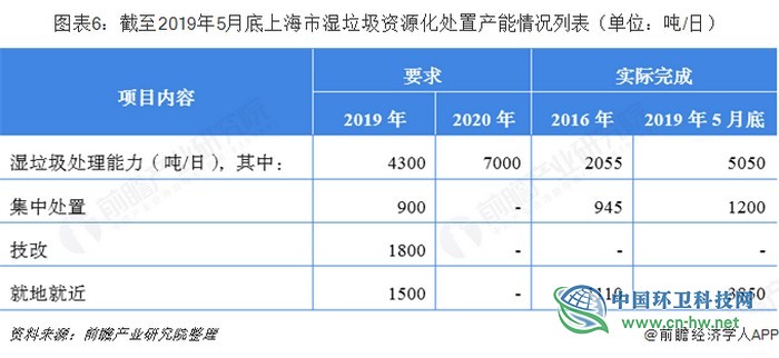 按照《上海市生活垃圾全程分类体系建设行动计划(2018-2020年)》的要求,2019年上海市的湿垃圾处理能力要达到4300吨/日(集中处置900吨/日,技改1800吨/日,就地就近1500吨/日);根据2019年6月18日上海市人大常委会推进生活垃圾全程分类管理专项监督调研会上披露的数据,截至2019年5月底,上海市湿垃圾资源利用能力已达5050吨/日(集中处置1200吨/日,分散处置3850吨/日),且“十三五”规划确定的老港、松江、金山等6个湿垃圾项目均已开工建设,在集中处置产能进一步提升的同时,通过就地就近处置产能的有效补充,有望完成2020年7000吨/日的产能目标。