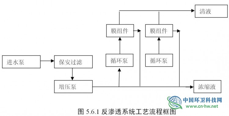当深度处理系统包含反渗透工艺时,反渗透进水宜为经生化处理后的超滤出水或者纳滤出水。宜参照工艺流程图5.6.1设计。