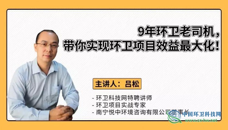 主讲人是环卫科技网特聘专家吕松。他是环卫科技网的老朋友,有自己的环卫咨询公司。必须是他,我认识的人里他最有资格讲实操课。因为只有他的经验最具有可操作性,也只有他总结出了系统操作教材!市面上的教材都没有。