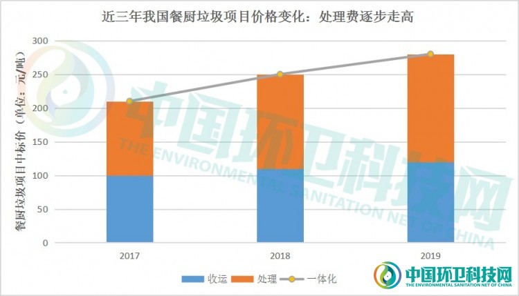 这个判断没错,据笔者统计,近三年我国餐厨垃圾处理项目平均中标价格发现,政府给予的处理费回暖,逐步走高,2019年一些餐厨垃圾项目收运+处理一体化项目,政府给予的费用在260元/吨-300元/吨,远高于前几年200元/吨。从近期光大国际在江苏、江阴、徐州等地,高价中标的餐厨处理项目也可窥探一斑,行业也在逐步回归理性,低价中标现象得到缓解。