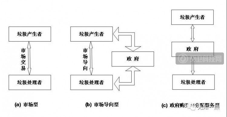 垃圾处理存在市场型、市场导向型和政府购买服务型3种组织方式。市场型方式下垃圾处理者与垃圾产生者(或代表垃圾产生者利益的社区、集体)直接交易,达成市场均衡价格,是一种你情我愿的市场行为;市场导向型是在政府监督下的市场行为,充分平衡了垃圾处理者、垃圾产生者和社会三者之间的利益;政府购买服务型是一种偏向社会福利而割裂垃圾处理者与垃圾产生者的组织方式,加剧了垃圾处理者与垃圾产生者之间的不配合。
