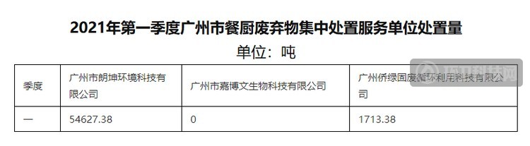 环卫科技网讯,7月26日,广州市城市管理和综合执法局公布了2021年第二季度广州市餐厨废弃物集中处置服务单位处置量。