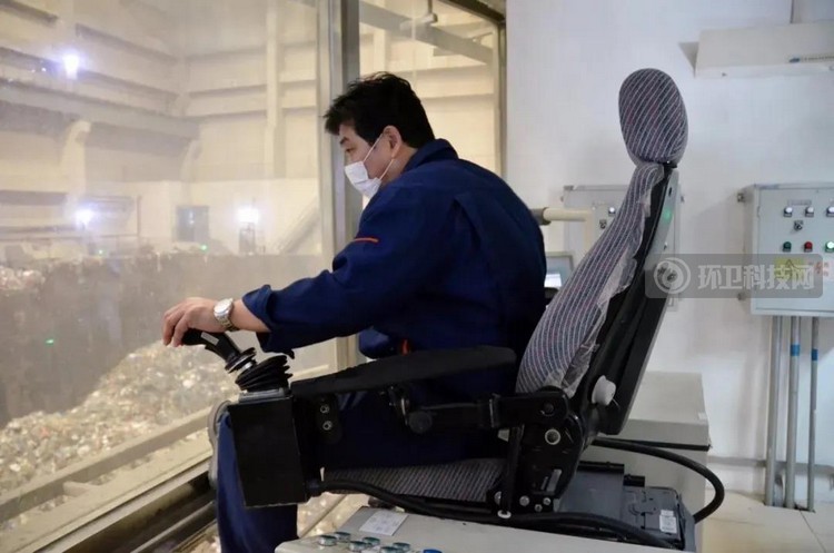 从卸料大厅送入的垃圾会在垃圾池内储存5-7天,发酵后由抓斗抓入焚烧炉中焚烧。而这中间的过程也都是通过机械化来完成的,工作人员只需坐在垃圾吊控制室,操控巨大的钢爪,将垃圾来回翻动。