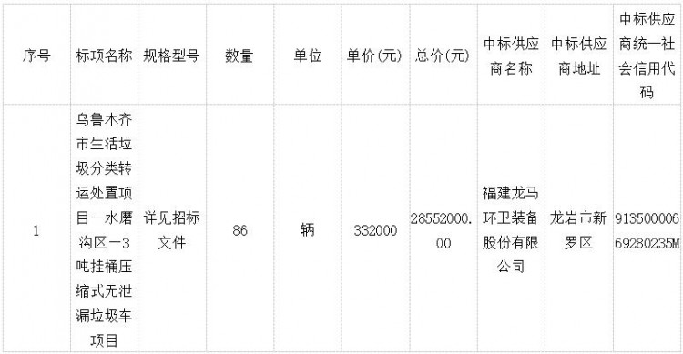 二、项目名称: 乌鲁木齐市生活垃圾分类转运处置项目—水磨沟区—3吨挂桶压缩式无泄漏垃圾车项目