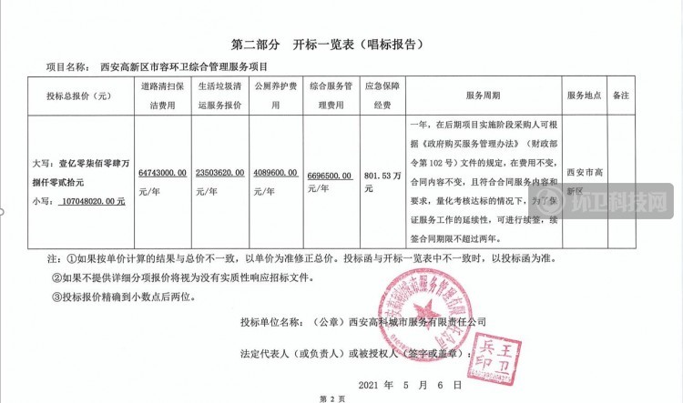 二、项目名称:西安高新区市容环卫综合管理服务项目